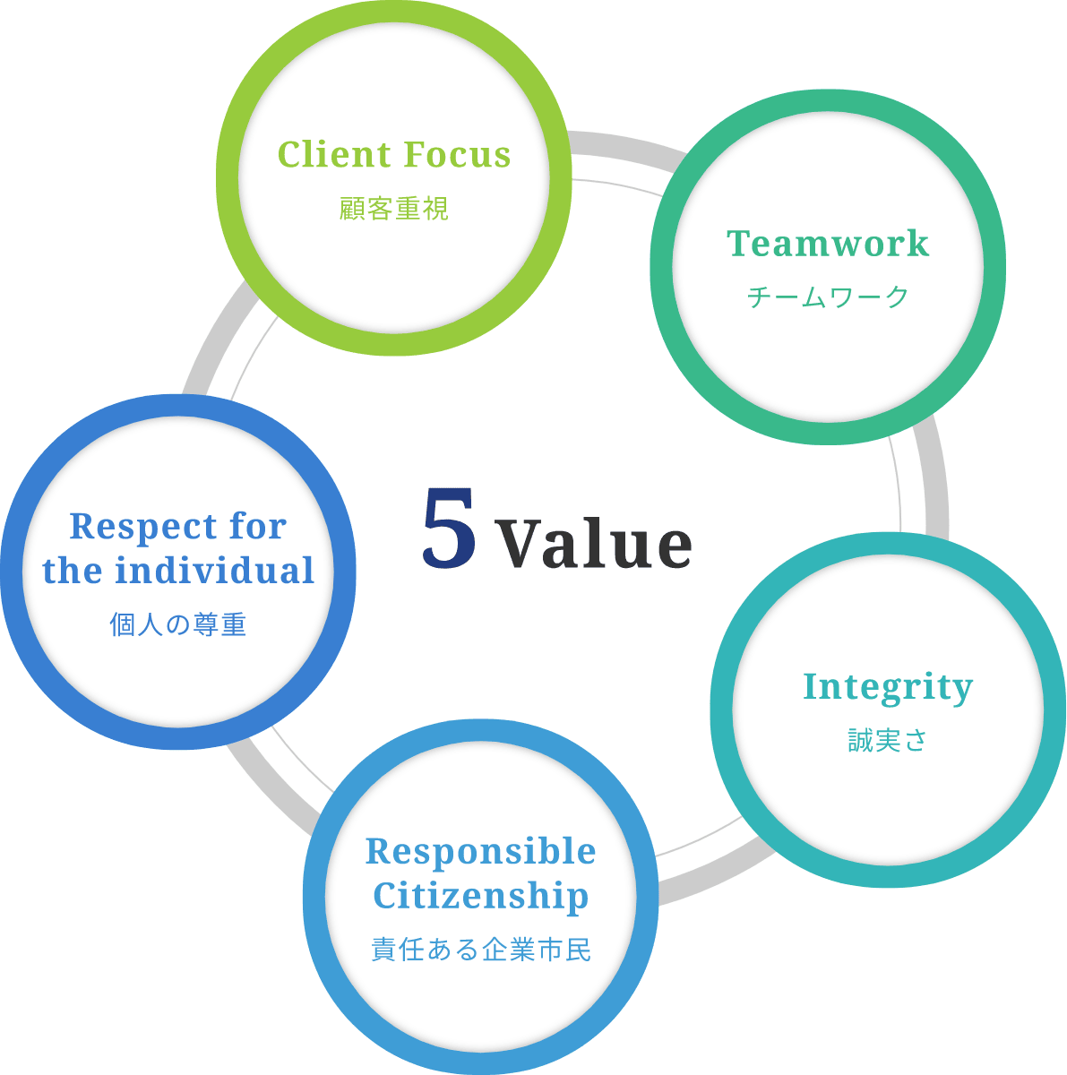 私たちがとても大切にしている5つのバリュー(価値)です。